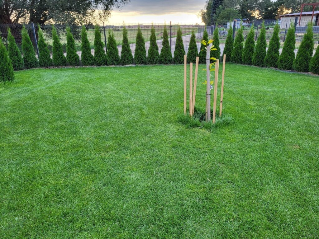 Podlewanie jest kluczowe, szczególnie tuż po wysiewie. Obficie podlej trawnik, aby zapewnić nasionom odpowiednie warunki do kiełkowania. Pamiętaj jednak, aby unikać przelania – gleba powinna być wilgotna, ale nie przemoczona.
