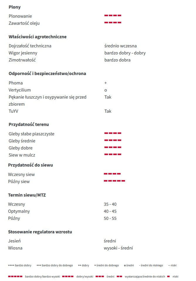 - pierwsza najbardziej innowacyjna odmiana mieszańcowa w Polsce z odpornością na wirusa żółtaczki rzepy (TuYV) i znakomitą mrozoodpornością,